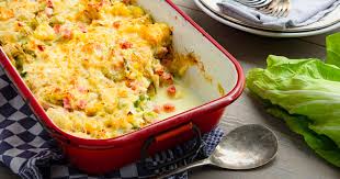 Verwarm de oven voor op 180 graden. Schil de aardappels, snijd deze in stukjes en kook ze in gezouten water gaar. Giet ze af. Snijd de groenlof in brede repen. Verhit de olie en bak de groenlof even kort aan zodat deze iets slinkt. Voeg sjalotjes toe. Schep de groenlof in een ovenschaal en roer de hamblokjes, creme fraiche, tomaatjes, en wat peper erdoor. Maak van de aardappel, melk, nootmuskaat en het uitgeperste knoflookteentje een smeuige puree. Verdeel de puree over de groenlof. Bestrooi de bovenkant met de geraspte kaas. Zet 20 min. in de oven.